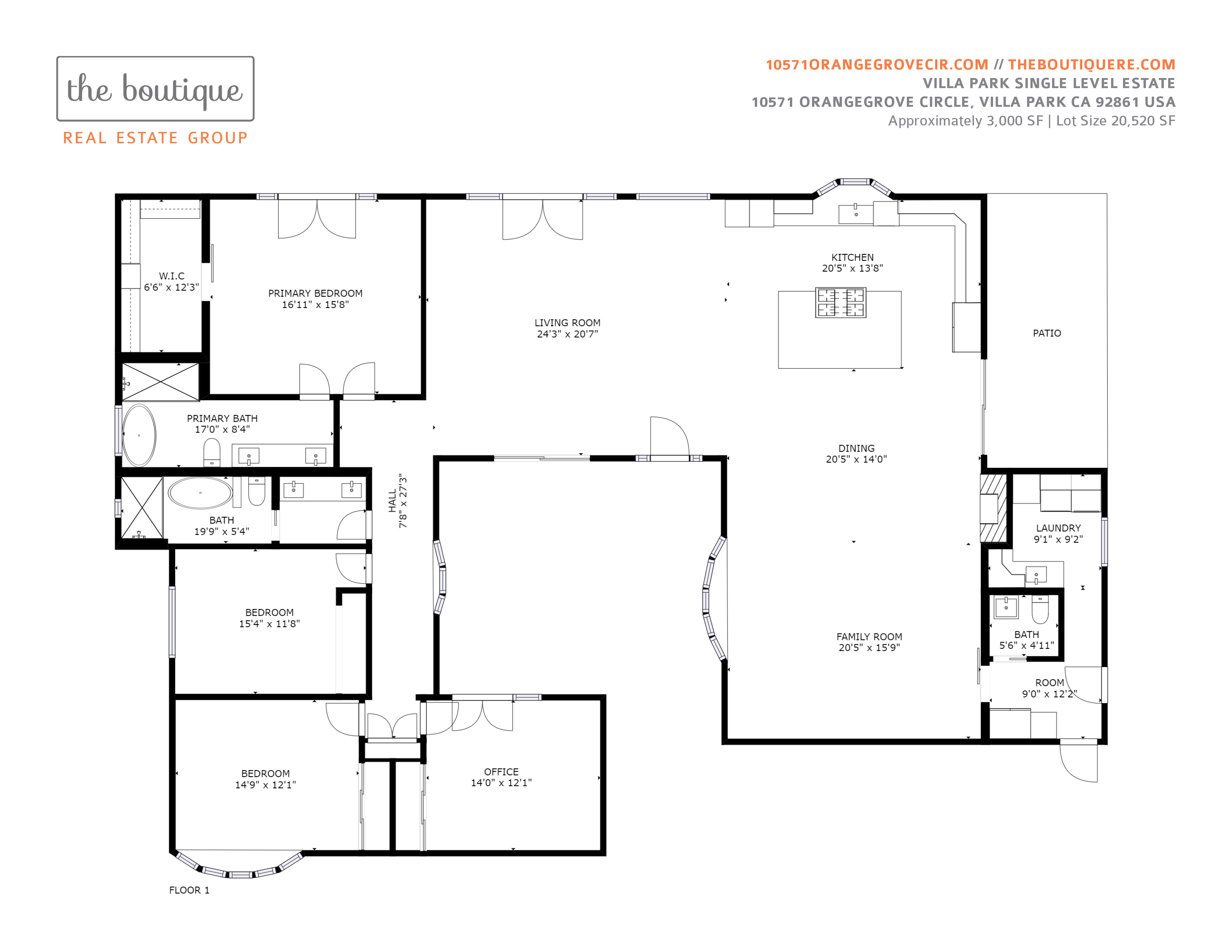 10571 Orangegrove Circle is an immaculate single-story estate in Villa Park and nestled on a cul-de-sac with an ultra-private 20,520 square foot flat lot. The home spans approximately 3,000 square feet of open living space with four bedrooms and 2.5 bathrooms and has been recently remodeled to meet modern times. The beautifully upgraded kitchen features SubZero, Wolf & Cove stainless steel appliances, custom cabinetry with soft close drawers and doors, solid surface countertops, custom backsplash & designer lighting. The kitchen seamlessly opens up to the spacious living room, dining room & family room. All-new LED lighting, custom hardwood flooring, Anderson windows & doors are just the beginning of the many upgrades this home has undergone. Just off the family room is a remodeled laundry room with custom cabinetry a half bath and also room for an additional refrigerator. The owner’s bedroom features french doors leading to the massive backyard, custom closets, and an impressive designer bathroom with a soaking tub. The three-car garage showcases an AC split unit, epoxy flooring, TV hook-ups, and custom cabinets. The driveway also has RV parking with dimensions at 26 feet x15 feet. With an outdoor California room with built-in TV, ceiling fans, and room for family & friends you can enjoy our year-round Southern California weather. Dive into the rockscape pool & spa and enjoy the large outdoor kitchen with built-in BBQ and even a pizza oven providing room for entertaining all year round.