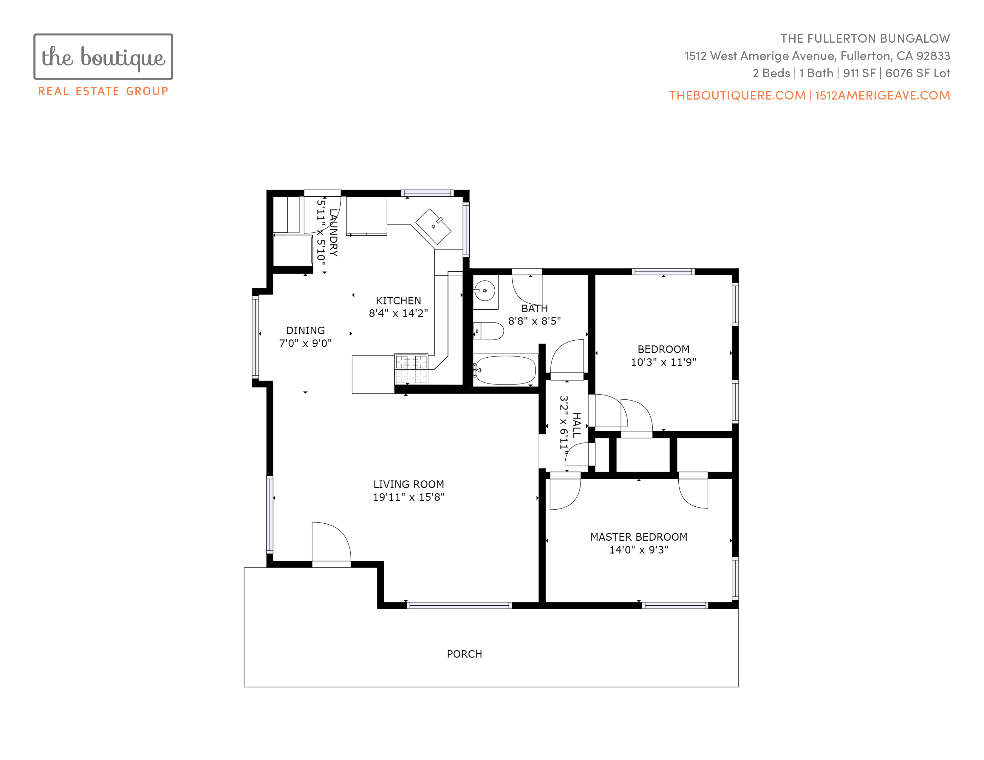 1512 W Amerige Ave is an Adorable Bungalow Home in The Heart Of Fullerton On A Beautiful Tree Lined Street. This single-story home reminds you of how things used to be with its simple charm & elegance. Approximately 911 square feet, 2 Bedrooms, 1 Bathroom, 2 Car Detached Garage on a Flat 6,076 sq ft Flat Lot With The Cutest Covered Front Porch For Watching The Kids Play Outside. This Open Floorplan Features an Upgraded Kitchen with stainless steel appliances, new countertops, custom backsplash, and all new cabinets. The kitchen opens up to the living room with beautiful hardwood floors, new recessed lighting, and is anchored by the fireplace with plenty of natural light. The large backyard has plenty of room for entertaining with a huge grassy area, fire pit, and large slider gate for RV access. New roof, new windows, and new copper plumbing throughout. Minutes away from Downtown Fullerton, Great Restaurants, Nightlife, Award Winning Schools, Parks, & Easy Freeway Access. No HOA.