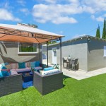 Enter through the white picket fence into a front yard blossoming with avocado and lemon trees, and a stone walkway leading you home. Walking into the home you are greeted by an open and inviting space, with a cozy living room featuring recessed lighting, gas fireplace and oak floors that open to a spacious kitchen with elegant white shaker-style cabinetry, Brazilian granite countertops and plenty of storage. The natural light off the eating area invites you through the glass doors, leading you to a private backyard with cozy turf grass underfoot, enfolded by 70-year-old groomed shrubbery.