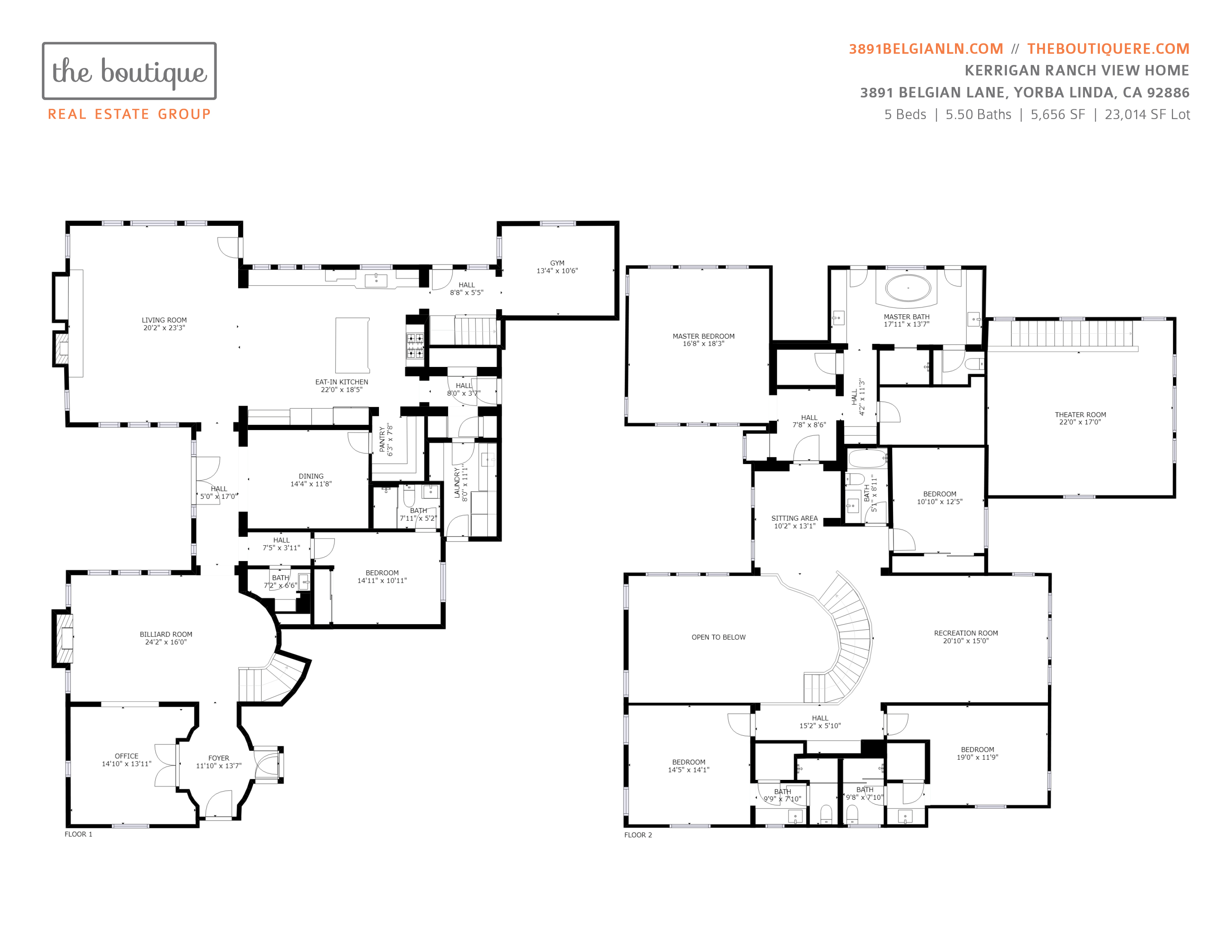 In the gently rolling hills of Yorba Linda is Kerrigan Ranch, a luxurious community exuding North Orange County's finest luxury homes. 3891 Belgian Lane spans 5,656 square feet of living space on approximately a 23,000 square foot flat lot with majestic sunset, golf course, Catalina Island & city light views. This Kerrigan Ranch inspiration is situated atop of Yorba Linda's premier luxury neighborhood and features a gourmet chef's kitchen, 5 bedrooms, 5.5 bathrooms, home office, home theatre room, home gym, upstairs bonus room, 3 car garage, salt water pool & spa, formal dining & living room and downstairs guest suite with private bathroom. The kitchen is highlighted by professional grade stainless steel appliances, custom countertops & backsplash, designer lighting fixtures and opens seamlessly to the massive family room. The family room with fireplace opens to the professionally landscaped backyard with salt-water pool & spa, built-in BBQ, endless sunset, golf course, Catalina Island, city light views and a huge grassy area for space to entertain family & friends. Beautiful artisan laid custom flooring Includes imported travertine & coordinating custom carpet throughout home. Dramatic grand foyer with signature sweeping wrought iron staircase leads you upstairs to 4 bedrooms, 4 full bathrooms, and a generously sized bonus room. The opulent master suite includes coffered ceilings, custom paint, dual walk-in closets with custom built-ins, large soaking tub and picturesque sunset, golf course, Catalina Island & city light views off the master balcony. Close to Black Gold Golf Course & just minutes away from Yorba Linda Country Club. Home to Yorba Linda High School and coming soon The all-new Yorba Linda Town Center.