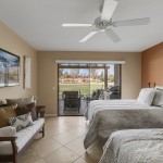 This single-level, turn-key, 2 bedroom, 2 bath condo has sunset and golf course views.  It is located at the Palm Desert Resort Country Club on the 10th fairway. The kitchen has been remodeled with new stylish custom cabinets, stainless steel appliances, granite countertops, an upgraded tile floor, and an ample-sized island for added counter space.  The breakfast bar seating has plenty of cabinet space for your storage needs. The vaulted ceilings in the living room make this home feel warm and welcoming for entertaining. Step outside the sliding glass door and you will see an extended tiled patio with patio cover. The sunset views cannot be missed. This home has an extended master bedroom with custom built-ins in closet and a sitting room leading out to the patio. Both bathrooms are upgraded with beautiful countertops and vanities complete with walk-in showers. The beautiful attached 2-car garage has epoxy flooring and plenty of room for a car and golf cart. A washer and dryer are also included. The Palm Desert Resort Country Club has a beautiful clubhouse, tennis and pickle ball courts, and award-winning golf course. The resort is a very active community with a clubhouse (includes formal dining, a lounge, and pro shop), and 20 pools and spas. The resort has a guard gate with 24-hour security. There is close proximity to dining and shopping. Desert activities include hiking and biking trails near the resort. The resort is 4 miles to the Indian Wells Tennis Gardens, 10 miles to Empire Polo Grounds (Coachella and Stagecoach Music Festivals), 25 minutes to Palm Springs Airport, and 2.5 hours to San Diego, Los Angeles, and Disneyland. The resort is a gem in the desert for seasonal or full-time residents. You will be in paradise out on the patio enjoying the sunset views and resort ambiance! Don’t miss this amazing opportunity!