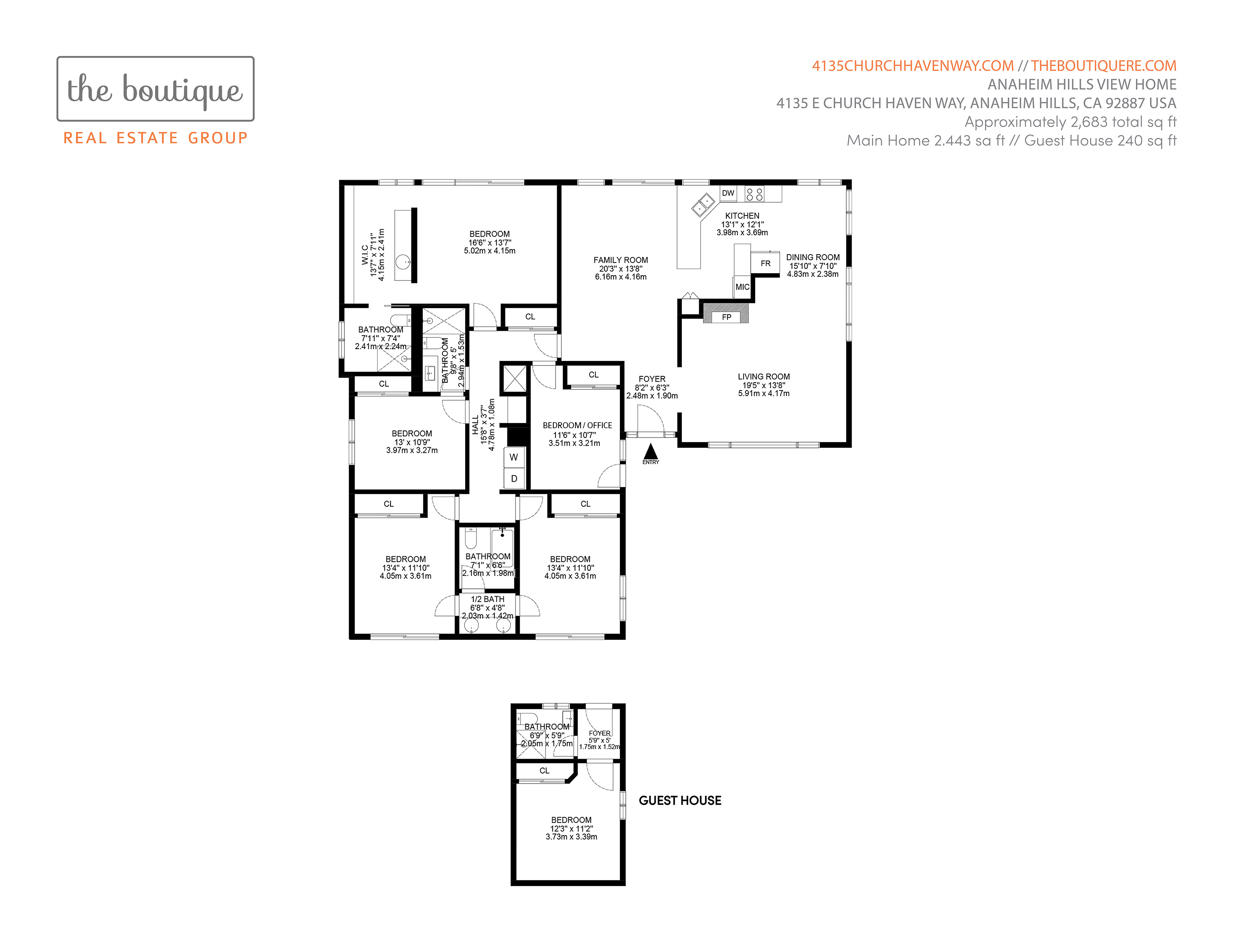 Welcome to 4135 E Church Haven Way, a beautifully single-level view home situated on a serene cul-de-sac in the heart of Anaheim Hills. This residence offers an abundance of living space, boasting a total of 2,683 square feet. 2,443 square feet in the main home, along with a separate 240 square foot guest house complete with a full bathroom. Inside the main home, you'll discover five spacious bedrooms, an open floor plan, three full bathrooms, a two-car garage (third car garage converted to bedroom + full bath), and a sprawling 14,690-square-foot (1/3 acre) flat lot. The outdoor space is a true oasis, featuring panoramic views, an outdoor covered gazebo with a new custom bar perfect for entertaining, a massive grassy area and gated RV parking with electrical and water hookups. The kitchen showcases panoramic views and is a culinary enthusiast's dream, features a breakfast bar, recessed lighting, premium appliances and ample storage space. The large windows flood the kitchen with natural light, offering stunning views of the expansive backyard. This home has undergone recent updates, including a premium roof and insulation, new HVAC system, new energy efficient water heater, new carpet in bedrooms, a remodeled bathroom, electrical throughout the house with recessed lighting, remodeled master bedroom closet, painted inside & outside of home, RV connections (50 amp + water), and new custom pavers throughout the property. You will love the five-car driveway and three-car garage with epoxy flooring (one car garage converted to bedroom suite with a full bathroom). Ideal for entertaining, the backyard presents an entertainer's paradise with its generous pool sized or ADU potential lot, outdoor gazebo with new custom bar, Premier Pro Tall TuffShed storage (10' x12'), and ample space for gatherings. Additionally, the gated RV parking with connections is perfect for your toy on wheels. Conveniently located, this home offers proximity to local golf courses, the 55 & 91 fwy, and Orange Lutheran High School. For families, this home falls within the desirable Orange Unified School District, with top-rated schools such as Nohl Canyon Elementary, Cerro Vista Middle, and Villa Park High School. With no Mello Roos or HOA fees, this is an incredible opportunity to own a stunning home in Anaheim Hills that perfectly balances luxury, privacy, and convenience. Don't miss out on making this home your own and seize the chance to enjoy a lifestyle defined by elegance and comfort.