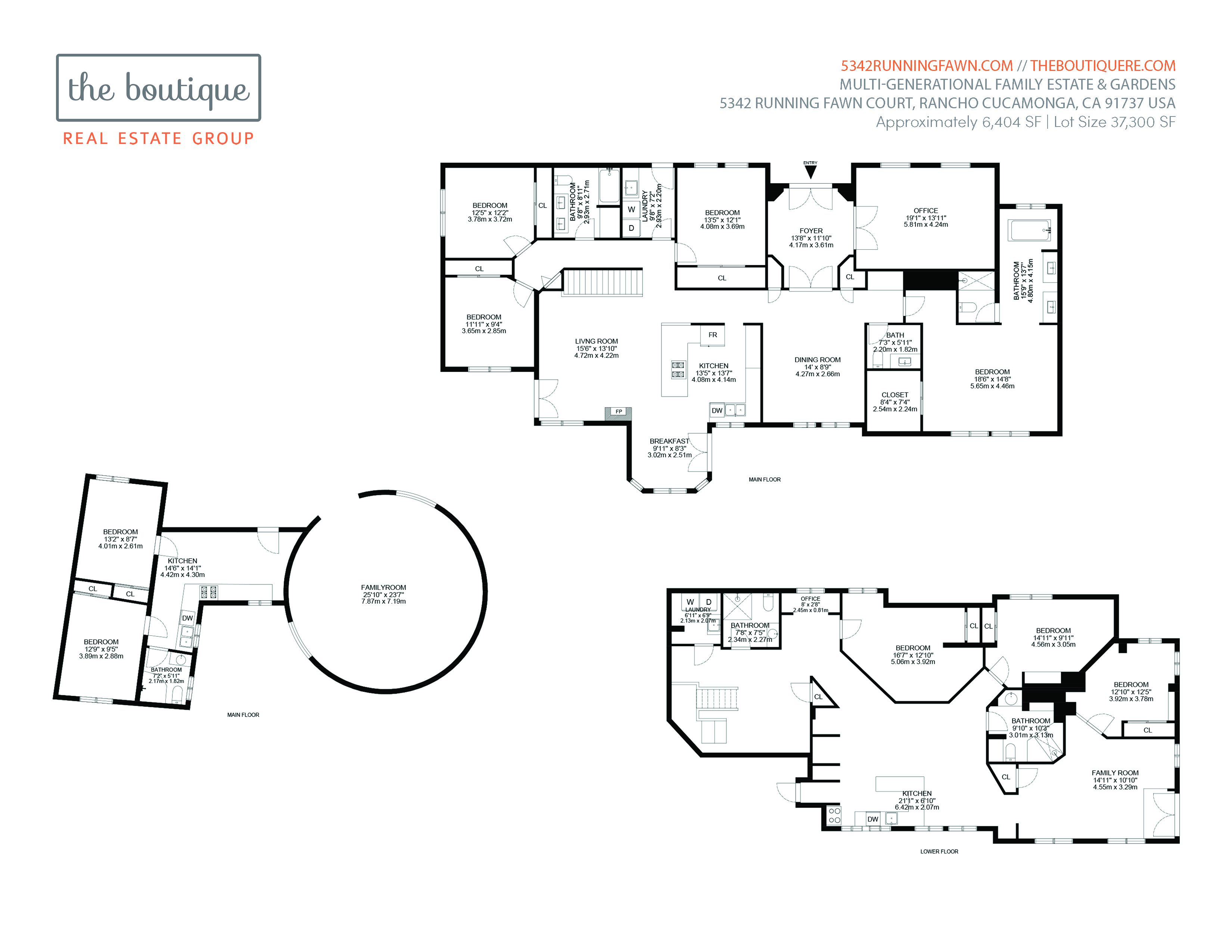 One-of-a-kind, sprawling multi-generational estate home and gardens, with the utmost privacy and security in the prestigious hilltop community of Deer Creek. This updated, custom built home is ideal for today's dual family living; with TWO separate homes/living spaces, 9 total bedrooms, 6 bathrooms, and 3 full kitchens. The main home features all new luxury vinyl plank flooring, new light fixtures, and fresh neutral paint. Upon entry is a large, private office with built-in oak cabinetry, formal dining room, kitchen with granite countertops, dinette nook with access to an outdoor patio, family room with fireplace, built-in media center and french doors leading to the entertainers backyard. Enjoy a spacious master bedroom with remodeled en-suite bathroom & walk-in closet. There are 3 additional bedrooms and 2 additional updated bathrooms and laundry room, complete with a new washer & dryer. Down the stately wood staircase, is the secondary home/living space, featuring imported Italian marble flooring. Offering plenty of privacy, with 3 bedrooms, 2 bathrooms, laundry room, full kitchen with granite countertops & extended dining area, generous living room with private separate entrance to the backyard. With its own HVAC, this is ideal for extended family & friends, in-laws, or as income generating potential. Situated on nearly one acre of lush, resort-style landscape and amenities, such as; sparkling Pebble Tec pool & spa with new heater/filter, large covered veranda with wood beam ceiling, a variety of mature fruit trees - persimmon, pomegranate, grapefruit, lemon, orange, tangerine, avocado & more, over 70 cascading palm trees, pine tree, rose garden, numerous walking paths and terraced, tranquil seating areas, and NBA Half Court Basketball. Nestled in the highest corner of the property is a detached guest house, with wood beam ceilings, 2 bedrooms, 1 bathroom, full kitchen with granite countertops and island. The living space embraces the warmth of a cozy cabin with its fold-out barn windows and rustic stone wood-burning fireplace fusing seamlessly with the outdoors. The Grand Indoor Pavilion with a dramatic 16 ft. vaulted wood beam ceiling and second stone wood-burning fireplace can easily host your largest family gatherings, banquets and events — an entertainer's delight! For the wine enthusiast, easily convert some of the space into your own personal wine cellar & tasting room. Located on a quiet cul-de-sac, with 3 remote controlled heavy-duty iron gates allow for parking in each of the 3 car garages, with additional RV and multiple vehicle parking on both sides of the yard. Enjoy the year-round lifestyle, stunning mountain and city light views of Rancho Cucamonga, with top-rated schools, numerous parks, Pacific Electric Trail, Victoria Gardens & Cultural Center, libraries, Trader Joes, Costco, and easy access to the 210 & 15 freeways. Don’t delay, you won’t find this rare and impressive 9 bedroom family estate anywhere else!