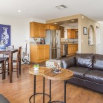 6017 Delphi is situated at the top of a quiet street overlooking Highland Park— one of Los Angeles’ most up and coming neighborhoods. From the bones of the home featuring a tankless water heater and copper plumbing, to the 1,337 square feet of living space, this home has it all. Upon walking through the front door you are greeted to an open living and dining area with natural light and room for entertaining. The kitchen features granite counter tops and plenty of storage. Upstairs there are 3 bedrooms and 2 full bathrooms. The master suite faces south and has a private balcony and full bathroom, with no common walls to the other bedrooms. The second bedroom has a sliding glass door that takes you out to the private and low maintenance patio area, featuring tile flooring and potential for expansion. The stress of Los Angeles parking should never be an issue, with a two car garage and driveway. Washer and dryer hook ups are in the garage, as well as a converted private music studio, where you can sing and jam all night without the worry of bothering your neighbors!