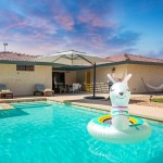There is truly something special about Bermuda Dunes. Located 10 minutes away from World Famous StageCoach & Coachella Music Festivals and just 20 minutes from Palm Springs International Airport, luxury shopping, & world-class healthcare, 79380 Port Royal Ave defines sophisticated desert living and enormous Airbnb income potential. As you enter through That Yellow Door, you're greeted by a fully loaded desert oasis with three bedrooms, two full bathrooms, a bonus room, and almost 2,000 square feet of living space on a massive 10,019 square foot flat corner lot. Completely renovated to please the fussiest guests, this home features an updated kitchen with quartz countertops, a custom backsplash, and professional-grade appliances which opens up to the large family room with a 65" flat-screen TV.  The primary suite showcases vaulted ceilings and an adjacent primary bath with upgraded countertops & cabinets, a walk-in closet, a shower/tub combo, and direct access to the entertainer's backyard. Formal dining room with seating for eight and custom lighting. The bonus room is upgraded with mid-century modern barn doors, an air-hockey table, and an additional murphy bed for those friends who do not want to leave. As you walk through the sliding glass door into the backyard, it will hit you. Nobody will want to leave this home. Patio cover with seating for eight, BBQ, ceiling fan, lounge chairs, sparkling pool & spa, and grassy area for all those spring break games. This is the perfect opportunity in the perfect neighborhood to start your Airbnb business. NO HOA.